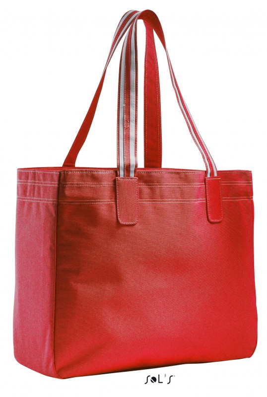 Внутренний карман на молнии - прострочка контрастного цвета в верхней части сумки - двухцветные ручки отделаны "седельным" швом.