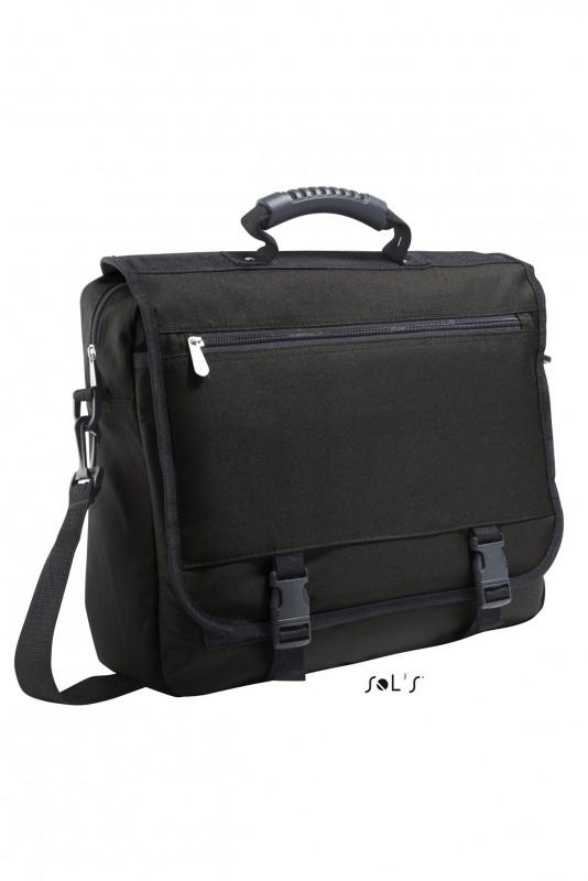 Вместительное центральное отделение с застежкой на молнии - на клапане карман на молнии - застежки в виде литых пластиковых защелок - под клапаном большой карман на молнии и множество кармашков с кантами - ячейки для ручек - маленький карман на молнии - карман для мобильного телефона - резиновая ручка с усилением из нейлона по всей длине - съемный и регулируемый ремень для ношения на плече.