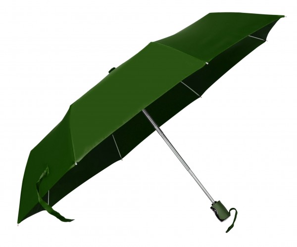 Складной автоматический зонт, с пластиковой ручкой в цвет полотна. Диаметр купола: 108 см
