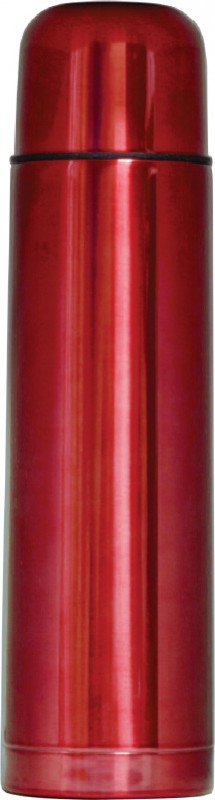 Термос из нержавеючей стали. Снабжен пробкой с кнопкой и стаканом крышкой для питья