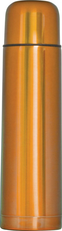 Термос из нержавеючей стали. Снабжен пробкой с кнопкой и стаканом крышкой для питья